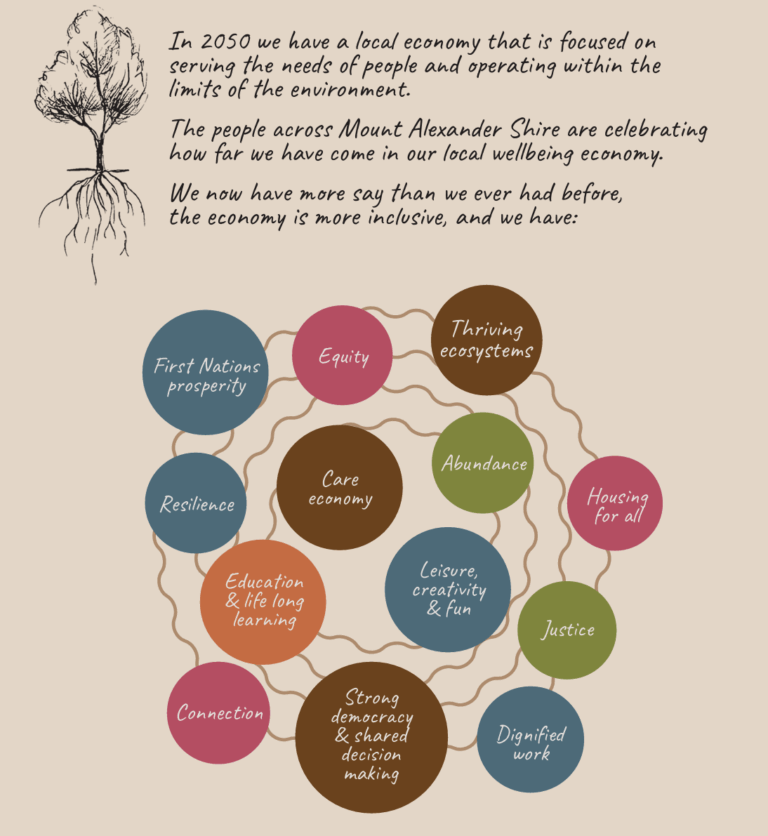 Castlemaine Institute’s Wellbeing Economy Team and network of partners and advisors, are together leading Australian efforts to use the wellbeing economy framework and approach to achieve a local economy that works for people and planet.